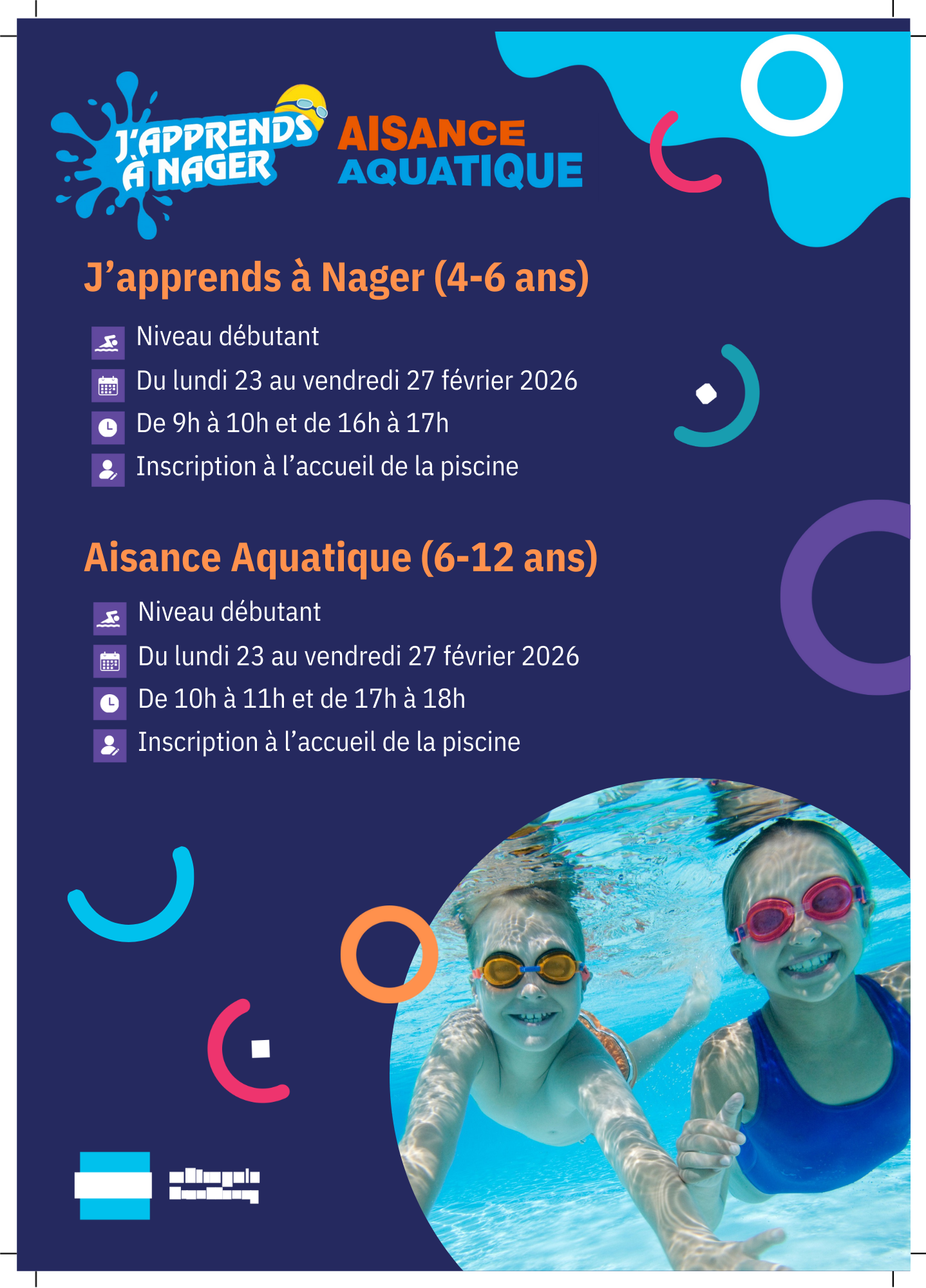 La piscine met en place des stages de natation gratuits durant les vacances de février dans le cadre des dispositifs « Aisance Aquatique » et « J’apprends à Nager ».